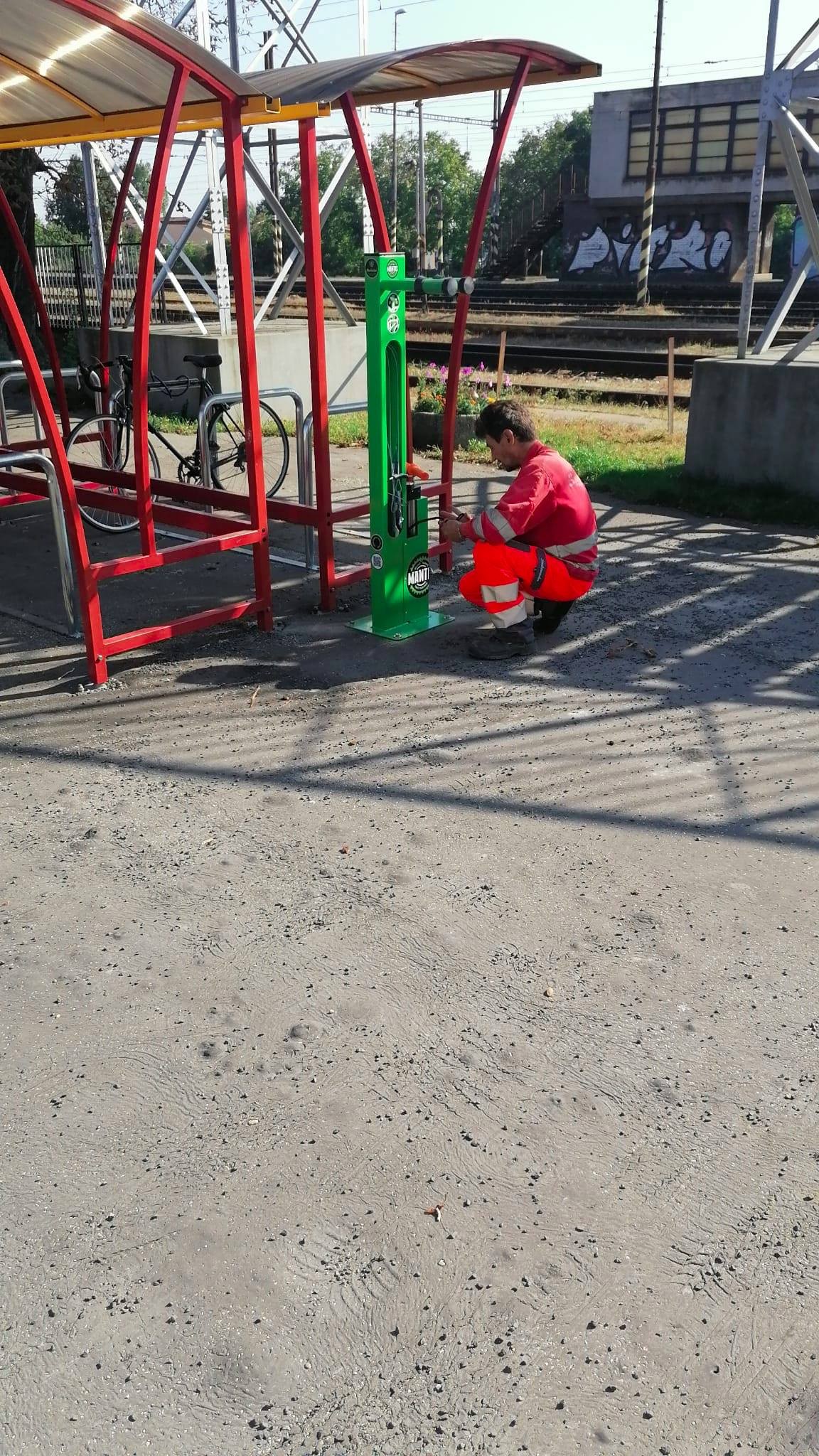 Stojan umožňuje drobné opravy bicykla, ale aj dofúkanie pneumatík. Cyklostojany sa nachádzajú na Jurskej ceste a na železničnej stanici.