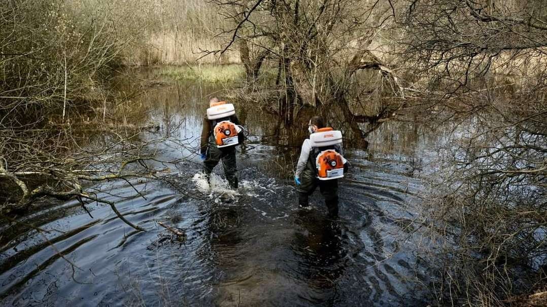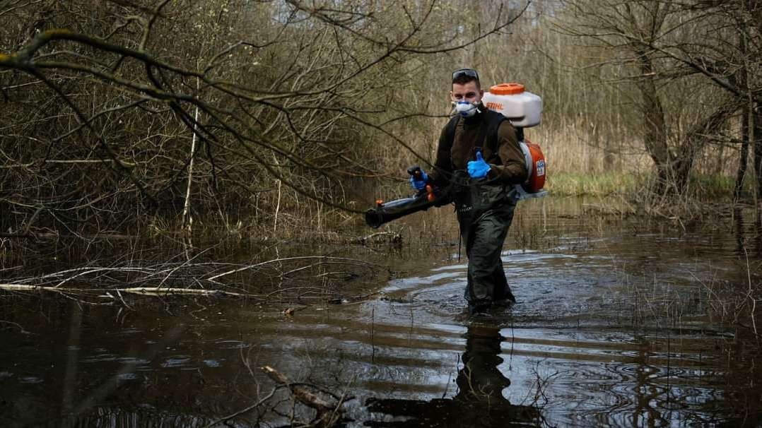 Sypanie larvicídu BTI zabezpečujú profesionálni sypači – či už ručne, pomocou chrbtových postrekovačov alebo prostredníctvom dronov sypú účinný larvicíd BTI na liahniská.