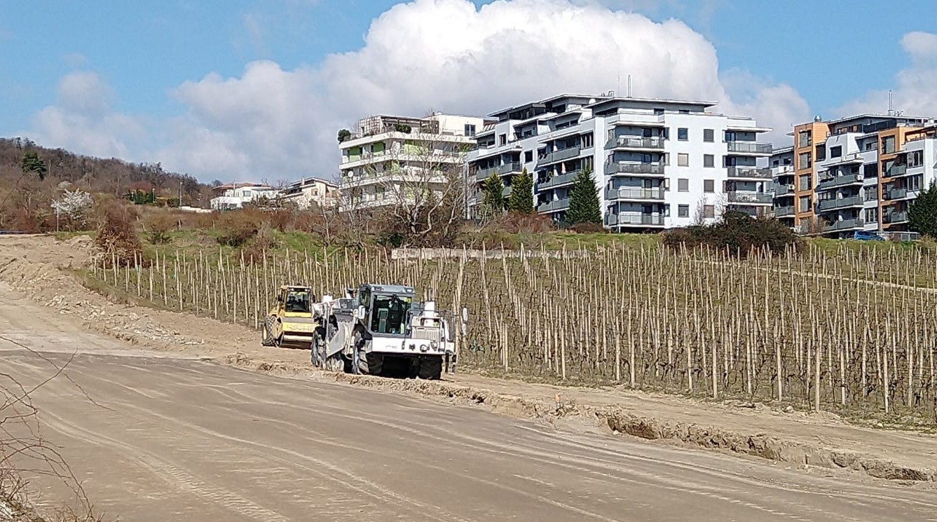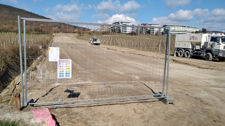 výstavba cesty v Malých Krasňanoch pomedzi vinohrady