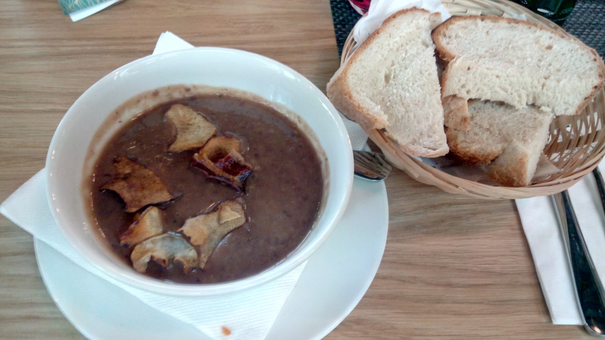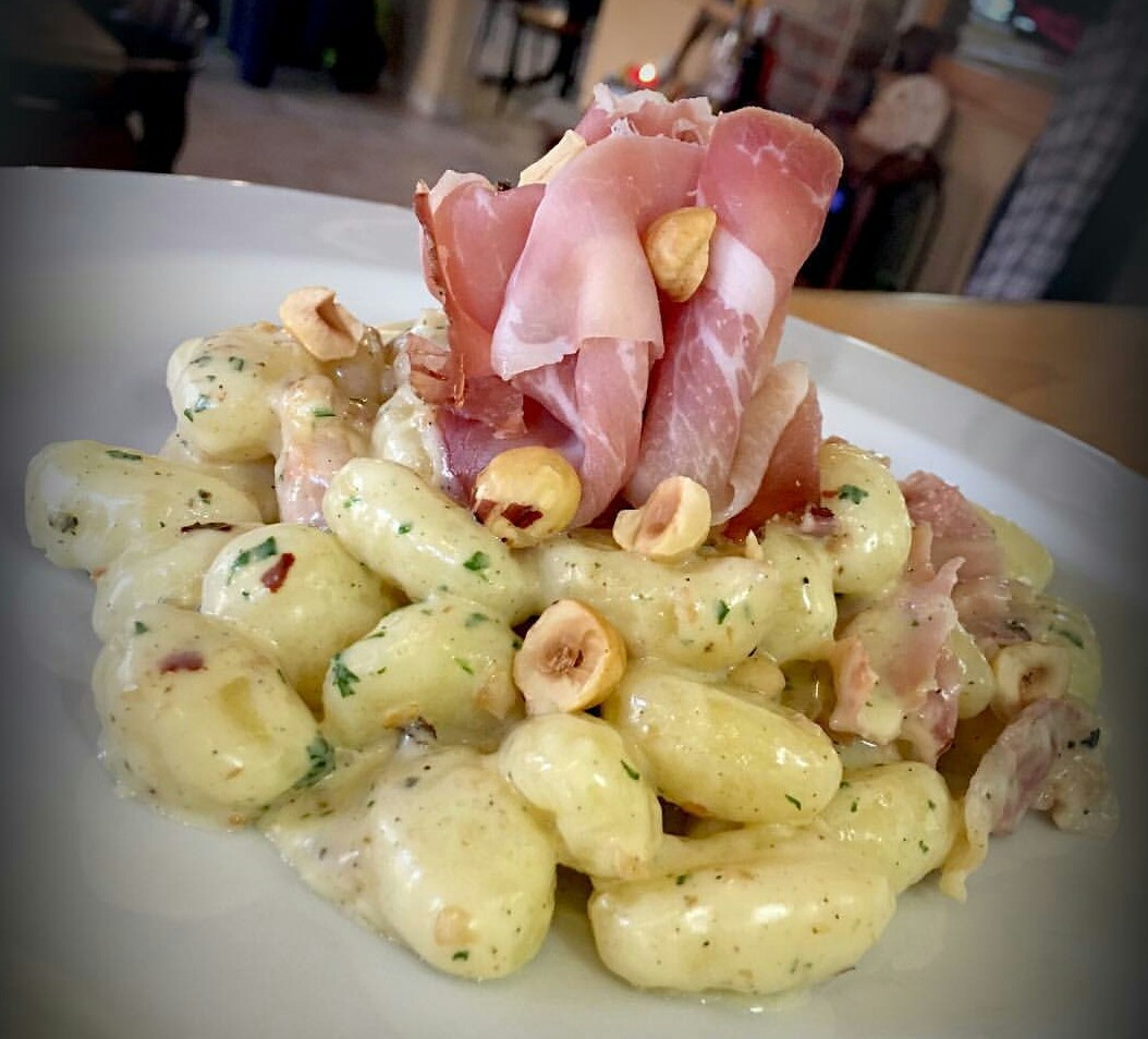 Z cestovín sme si vybrali zemiakové gnocchi s rukolovým pestom, s parmezánom, cherry paradjkami a surovou šunkou (9,9, €), ktoré rovnako nemali chybu. Nemohli sme si nechať ujsť ani rizoto, pred niektorým z trojice rizot v jedálnom lístku sme dali prednosť špeciálnej ponuke špenátového rizota s kroketami plnenými kozím syrom (11,00 €). Bolo vynikajúce.