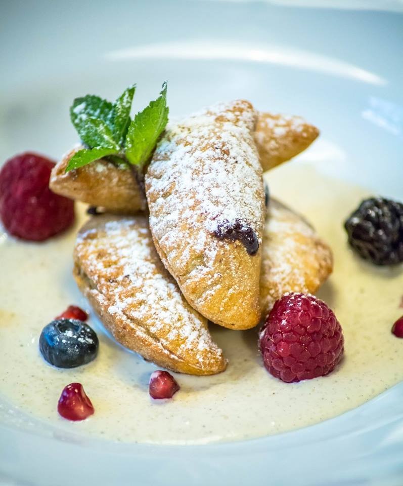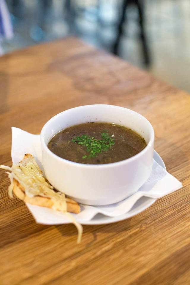 Z polievok sme si dali obe – hovädzí vývar Tafelspitz so zeleninou a trhanou hovädzou kvetovou špičkou, tradičnými spätzlami, servírovaný s hovädzím špikom na opečenom chlebíku (6,90 €) a dubákovú krémovú polievku s chrumkavým cícerom, kúskami opečenej hlivy ustricovej a olejom z údených pečených paprík (4,50 €). Aj polievky boli veľmi chutné, koreňová zelenina vo vývare však nemusela byť nastrúhaná na rezance, niekomu to môže pri jedení robiť problém. Za zmienku stojí, že vývar majú vo dvoch variantoch – tretinový (0,33 l) a dvojtretinový (0,66 l / 11,90 €).