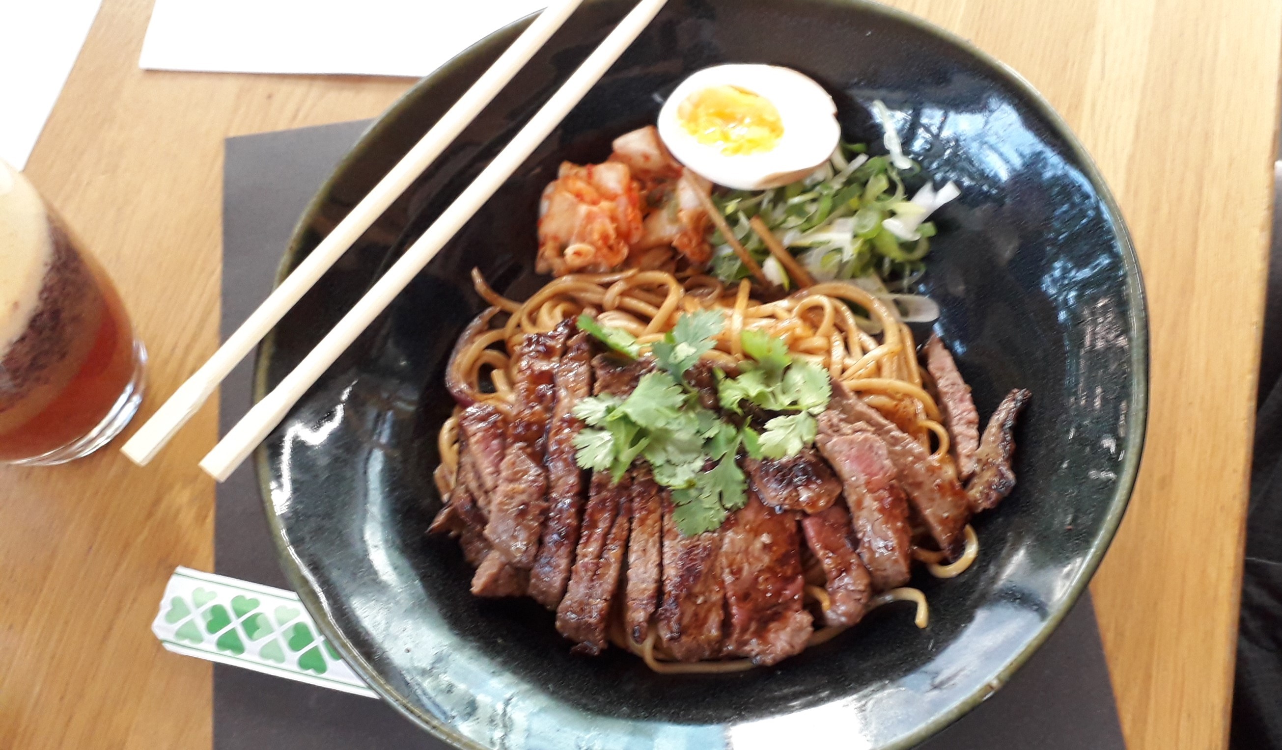 Vyskúšali sme tiež Steak Bulgogi (15,75 €), čiže marinovaný steak so soba rezancami, ktoré sa tradične pripravujú z pohánkovej múky.