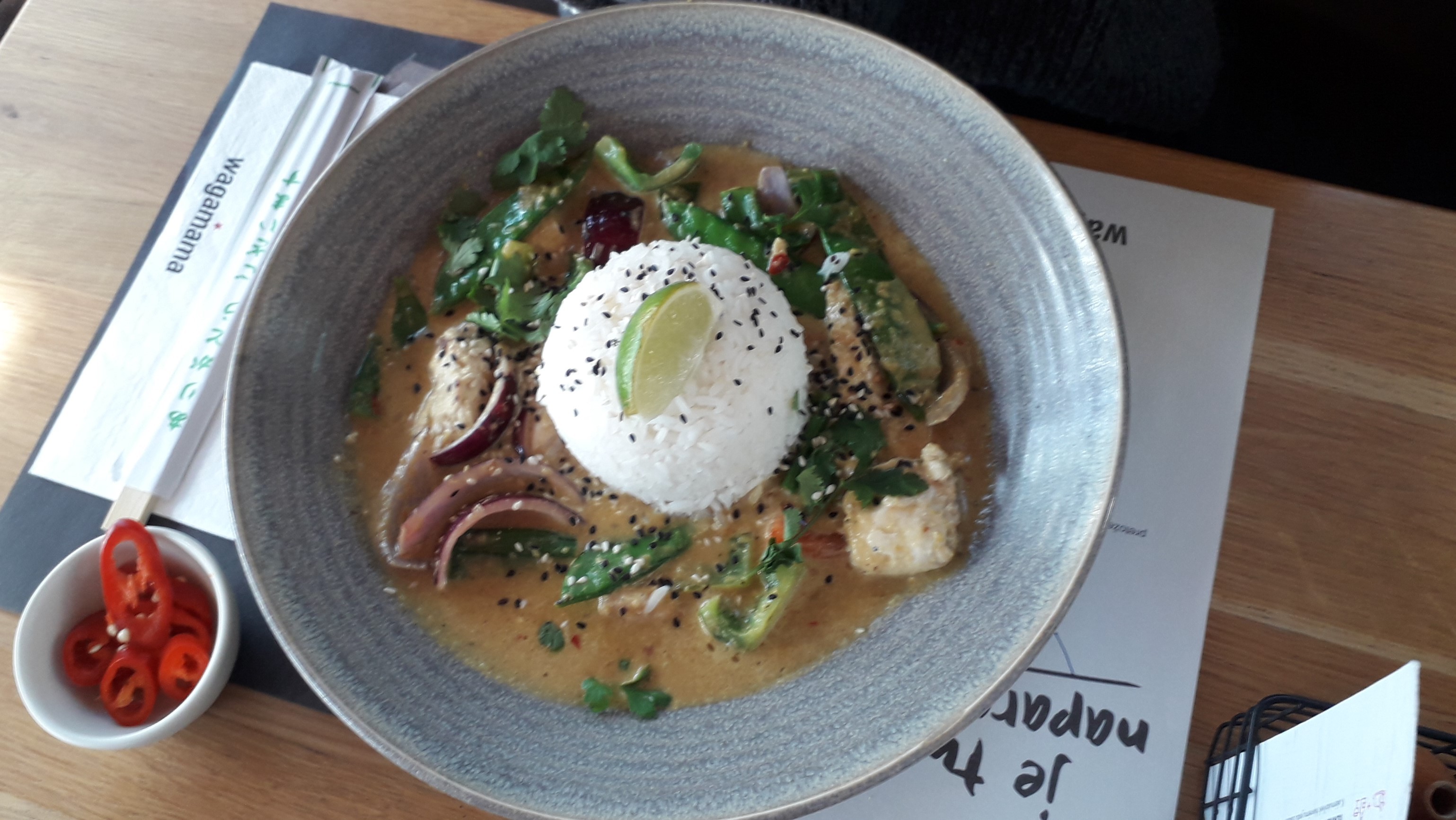 Ako prvé nám priniesli Raisukaree s kuracím mäsom (10,45 €). K šťavnatému kuraciemu mäsku sa výborne hodila jemne pikantná karí omáčka.