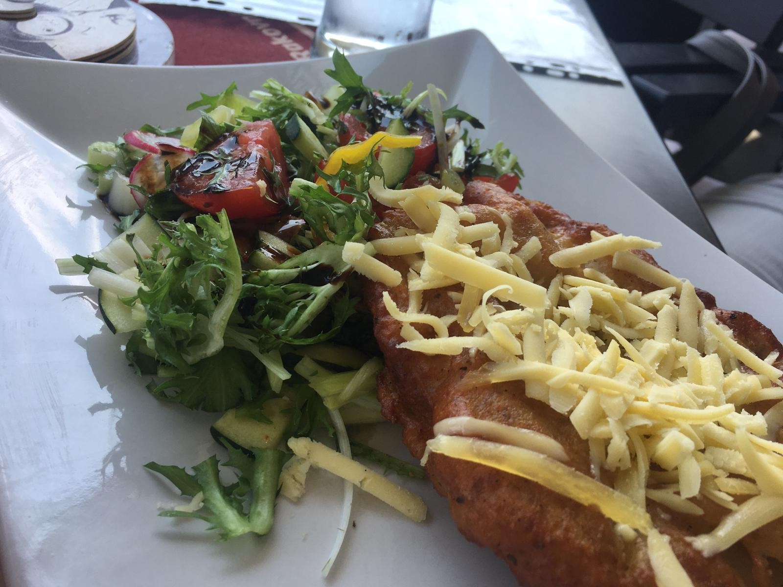 Černohorský rezeň (6,90 €), na ktorom milujeme najmä zemiakové cestíčko, nás sklamal, chuť strúhaných zemiakov sme v ňom takmer necítili, ani vôňu majoránky. Bravčové mäsko však bolo mäkké, čisté – ak si odmyslíme, že sme chceli „černohor“, chutilo. Porcia bola dostatočne veľká a v tomto smere nesklamal ani maďarský guláš s knedľou (6,90 €). Čakali sme síce výraznejšiu, pikantnejšiu chuť, no hovädzie mäso bolo jemné a šťavnaté.