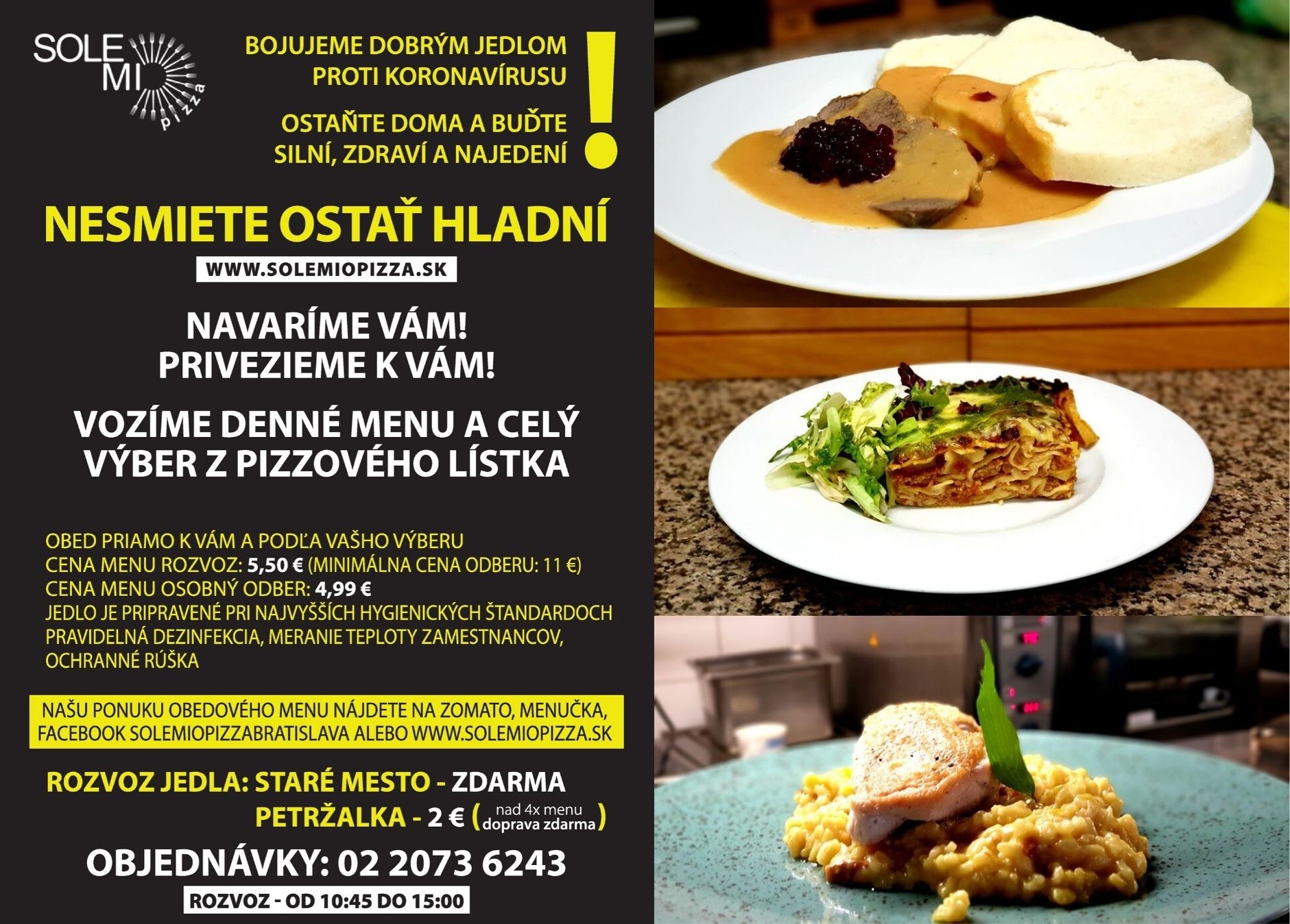 Menu na výber nájdete na menucka.sk, zomato.sk, www.solemiopizza.sk.