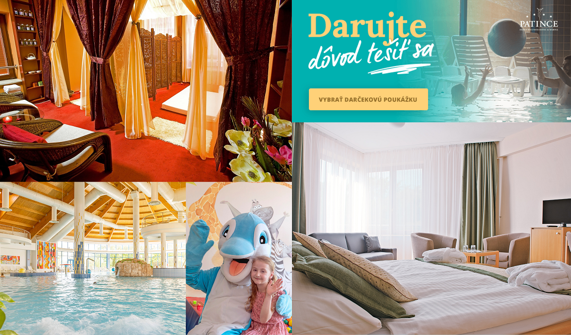 Wellness Hotel Patince**** je familyfriendly hotelom pri najjužnejšej obci Slovenska Patince s termálnou vodou a množstvom aktivít pre deti a dospelých, wellness a spa procedúr. Tento rok je náročnejšie si plánovať chvíle oddychu a radosti. Možno vám tiež chýba ten pocit, keď sa môžete na niečo tešiť. Doprajte ho svojim blízkym alebo si sami naplánujte zážitky do budúcna.