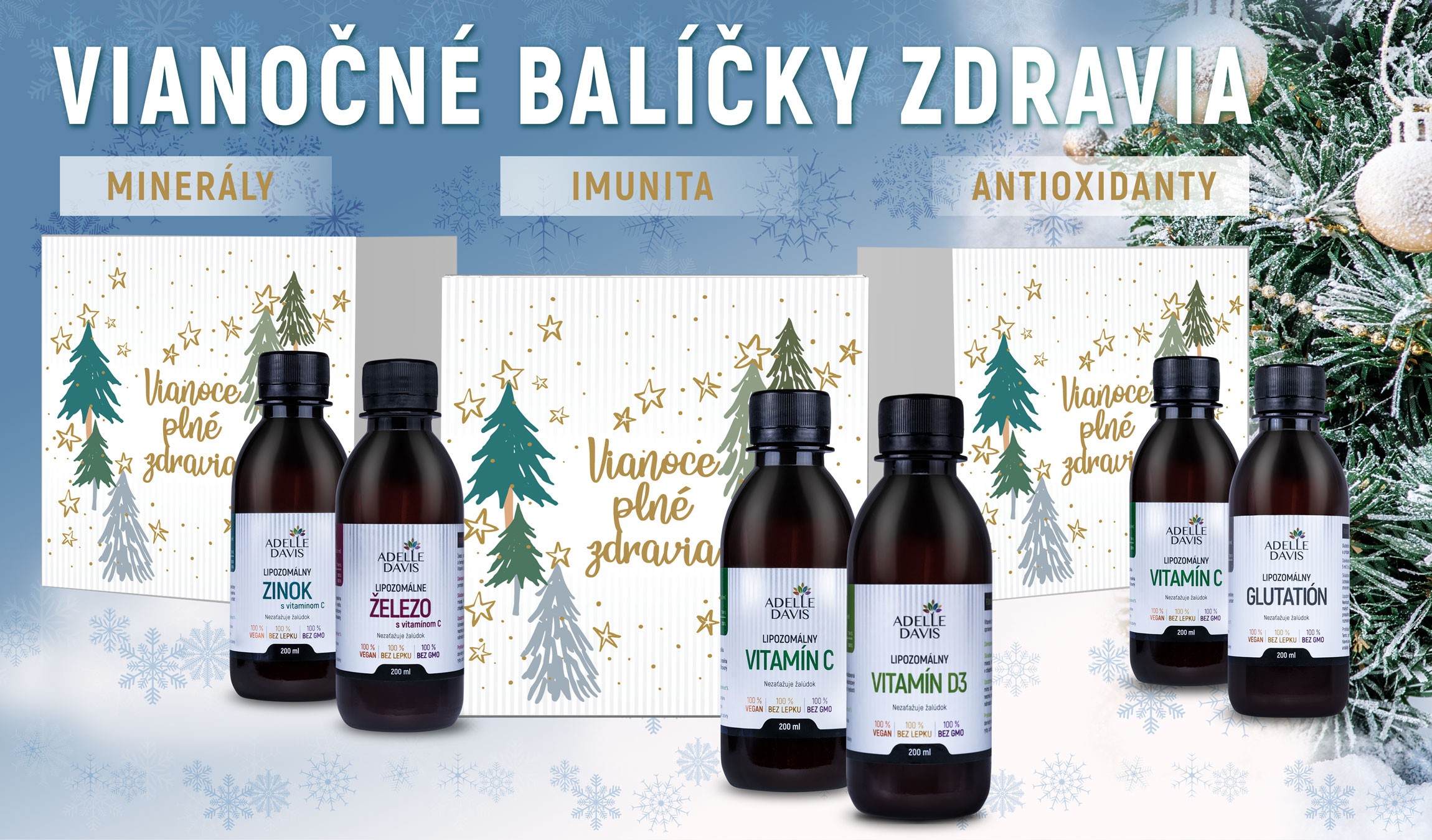 Známa múdrosť hovorí, že zdravý človek túži po všeličom, chorý iba po jednom. Zdravie ako také darovať nemožno, ale originálne produkty, ktoré k zdraviu výrazne pomôžu, áno. Slovenský výrobca Adelle Davis® pre vás pripravil zdravé darčekové balíčky lipozomálnych produktov. Práve v tomto období je vhodné pravidelne dopĺňať vitamíny a minerály, ktoré naše telo potrebuje, či už na podporu imunity, alebo na riešenie konkrétneho zdravotného problému. Nie je ale jedno, akú formu vitamínov si zvolíte. Nedostatkom klasických foriem ako sú kapsuly, prášok alebo nápoje je, že sa prevažná časť účinnej látky znehodnotí už v tráviacom trakte a na miesto určenia sa dostane iba cca 20%. Riešenie prináša lipozomálna technológia, ktorá má až 6-krát vyššiu vstrebateľnosť. Lipozomálne vitamíny značky Adelle Davis® sú produkty farmaceutickej kvality 100% prírodné, vegánske, bez cukru, bez lepku a geneticky nemodifikované. Sú vyrobené s využitím najnovších trendov v biochémii a výrobe výživových doplnkov.