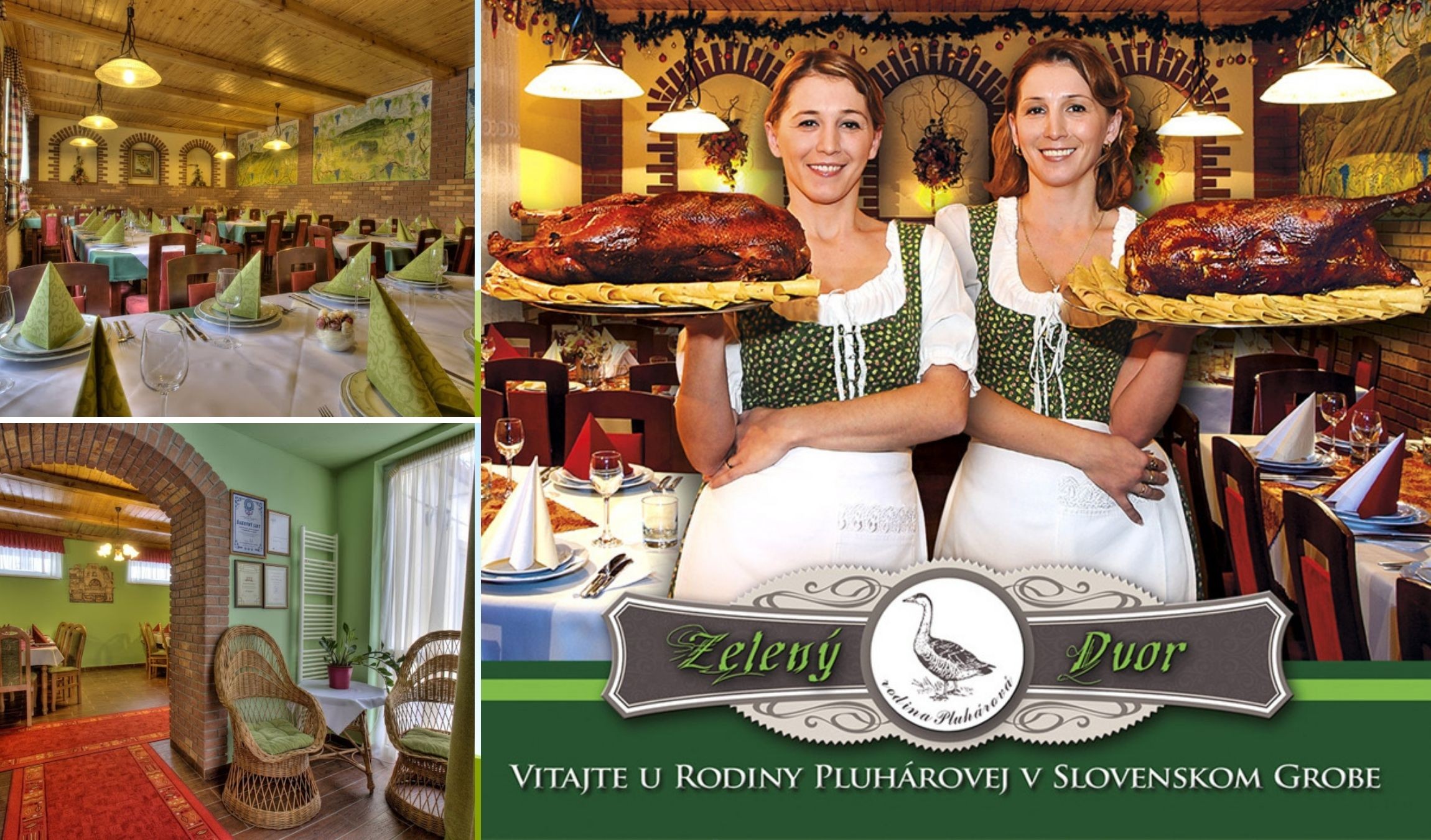 Husacinári a husacinárky zo Slovenského Grobu sa svojím kulinárskym umením preslávili už pred viac ako 100 rokmi. Ich chrumkavá a voňavá husacinka si spočiatku získala srdcia i žalúdky zákazníkov na bratislavských trhoch, odkiaľ sa chýr o nich rozniesol široko-ďaleko. K vychýreným grobským husacinárskym reštauráciám patrí Zelený Dvor. Rodinná tradícia prípravy husaciny tu začala pred vyše 50 rokmi. Podnik bol v minulosti aj dnes známy nielen špičkovou gastronómiou, ale aj príjemnou rodinnou atmosférou. Posedenia pri horiacom krbe či na útulnom dvore s pohárom lahodného vína umocnia gurmánsky zážitok. Deti sa zabavia v detskom kútiku.