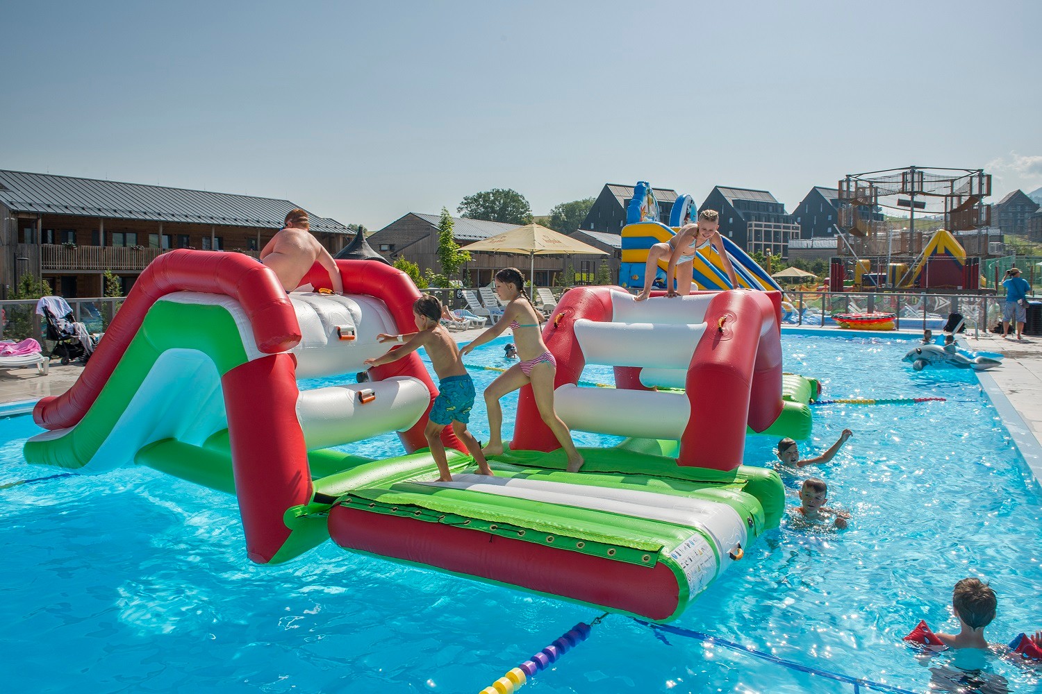 V strede veľkého 20-metrového bazéna leží nafukovacia prekážková dráha. Ani nebudete vedieť ako, a celá vaša rodina sa bude pretekať, kto ju prejde prvý! Balans a výdrž si tiež potrénujete v nafukovacom valci v akvazorbing bazéne.