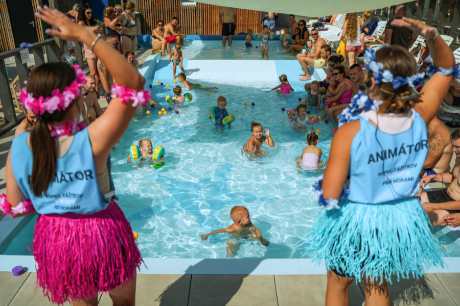 Cez leto sa tu nudiť rozhodne nebudete vďaka programu pre deti a dospelých od rána do večera. Denne sa na vás v bazénoch budú tešiť naše animátorky, ktoré si s vami zacvičia akva aerobik a pripravia rôzne súťaže vo vode.