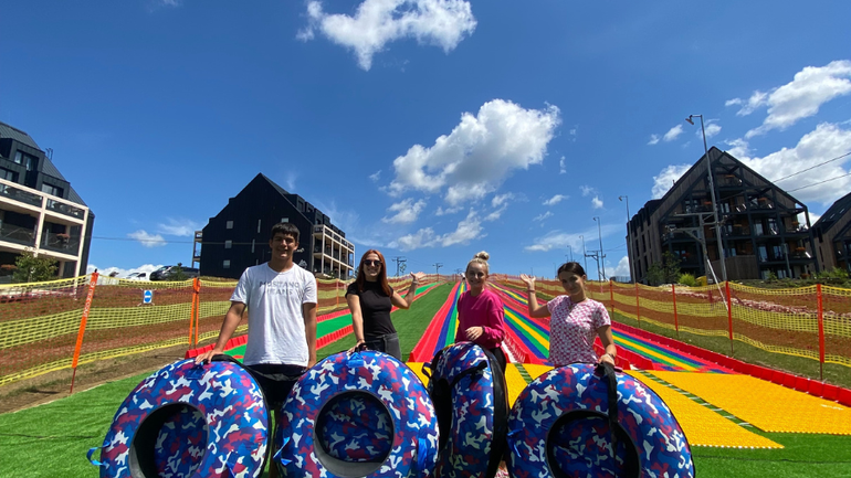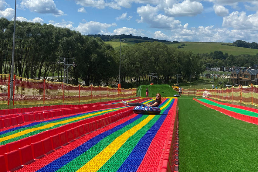 Mnohí z vás už stihli vyskúšať cez zimu lyžiarsky svah priamo pod oknami apartmánu. Ako sa však využíva cez leto? No predsa ako tubingová dráha! Nekonečná zábava vás čaká na troch dráhach s rôznymi dĺžkami a prevýšením. Jednoducho, zoberiete si veľké nafukovacie koleso, vybehnete na vrch a hurá dole.