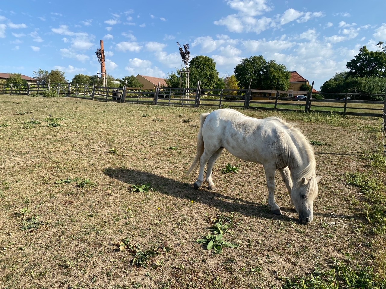 Hneď, ako sme sa ubytovali, vybrali sme sa na prechádzku do obrovskej krásnej záhrady, ktorá patrí ku kaštieľu. Cestou sme natrafili na ovečky i bieleho poníka a v diaľke na kopci sme zahliadli pasúce sa kravy. Prešli sme sa voňavou bylinkovou záhradou, objavili sme tu aj malý vinohrad, ovocné stromy a malebné jazierko s množstvom rýb... Pôvab tohto vidieckeho prostredia si vás podmaní.