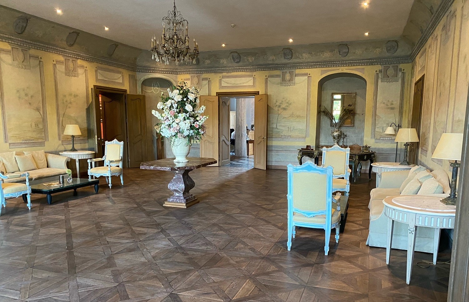 Nám sa podarilo prísť pol hodinku pred check-in, izbu sme však už mali pripravenú. Fascinoval nás interiér dýchajúci históriou, ktorá siaha až do 18. storočia. Hneď pri vstupe do kaštieľa za recepciou sme obdivovali pôvodné fresky, ktoré sa podarilo zachovať. No nielen táto miestnosť je očarujúca, hotel zariadil i ďalšie salóniky s atmosférou spred stáročí, kde sa dá posedieť, pričom každý jeden je výnimočný, iný.