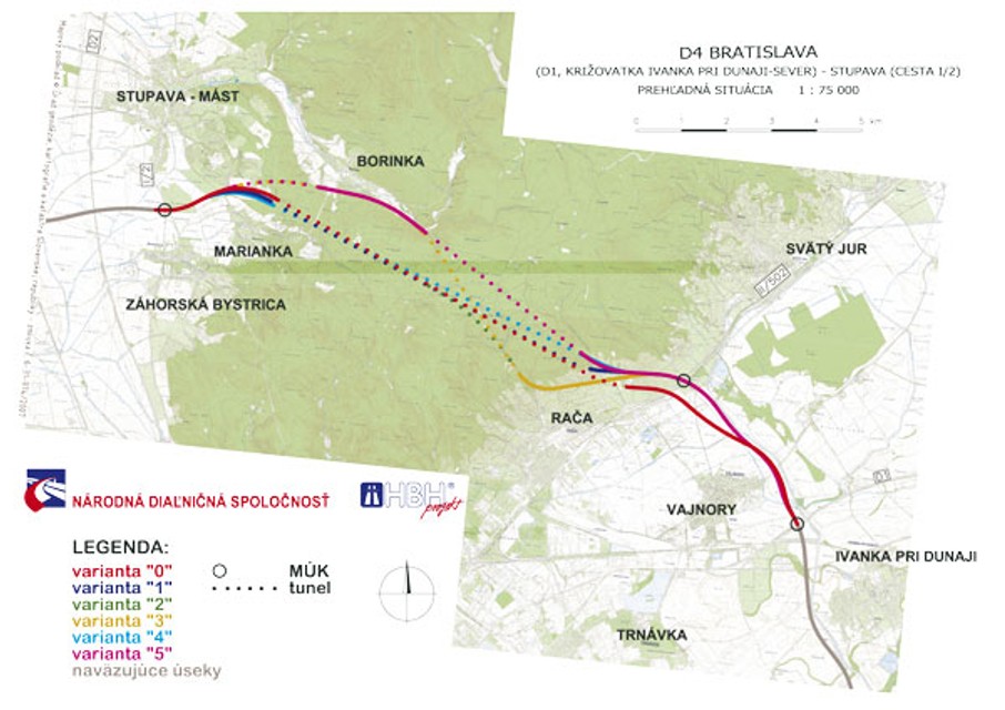 Zatiaľ šesť variantov má vedenie novej diaľnice D4, ktorá by mala byť aj súčasťou tzv. nultého okruhu okolo Bratislavy. Diaľnica sa má spojiť s existujúcou diaľnicou D2 a tunelom cez Karpaty sa napojiť na diaľnicu D1.