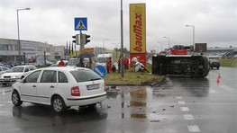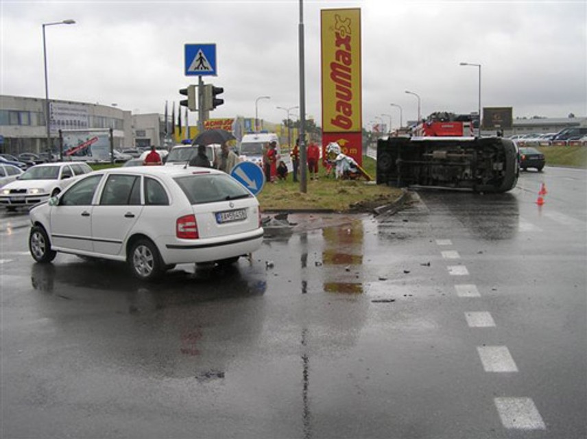 Sanitka so zapnutým výstražným svetelným a zvukovým znamením prechádzala križovatkou v smere do mesta, kde do jej zadnej časti narazilo osobné motorové vozidlo Škoda Fabia idúce v smere od Vajnorskej ulice. Následkom zrážky sa sanitka prevrátila nabok.