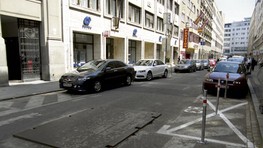 Parkovanie vozidiel tesne pred priechodom pre chodcov bráni výhľadu chodca na prichádzajúce auto. Preto je logické dodržiavanie určitej vzdialenosti medzi parkovacím miestom a zebrou. V tomto prípade je to na doraz. Ďalšie nové vyhradené parkovacie miesto zrejme aj s novým stĺpikom vzniklo aj pred vchodom do pasáže, ktorá spája Gorkého ulicu s Laurinskou.