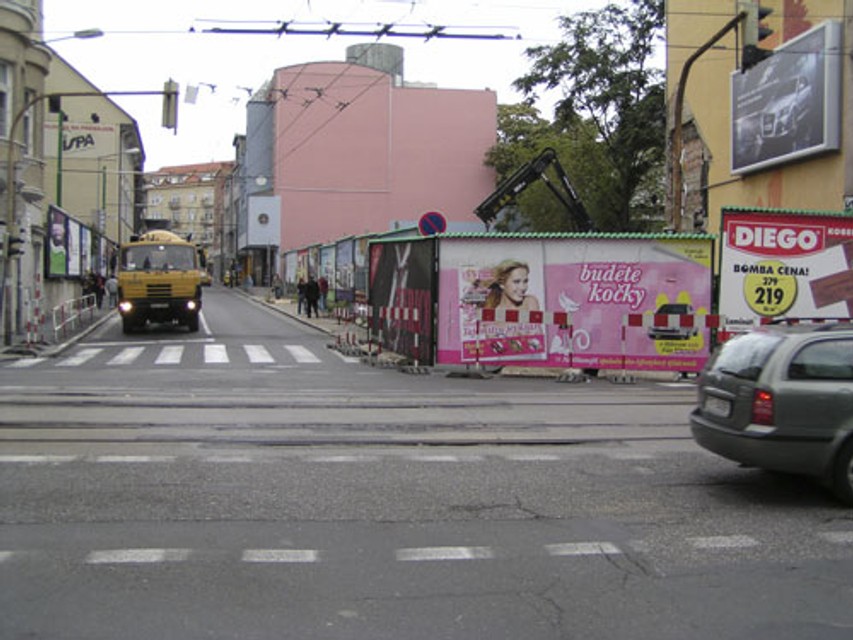 Plot na Ulici 29.augusta zaberá aj chodník, na Špitálskej ulici vystupuje okrem chodníka priamo na komunikáciu tak, že jediný jazdný pruh je neprejazdný! Okrem osobnej dopravy tu jazdia električky a trolejbusy - navyše, plot zakrýva jeden semafor pre vozidlá, ale aj semafor pre chodcov!.
