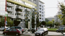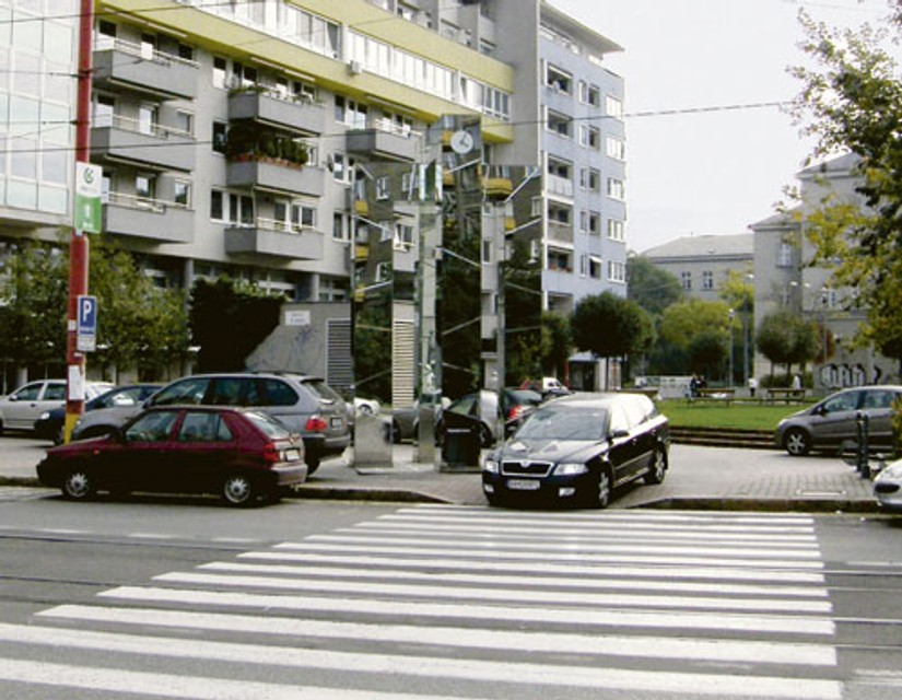 Aj to patrí k Námestiu M. Benku, auto vychádza na cestu priamo z priechodu pre chodcov.