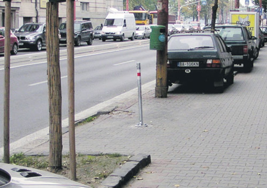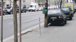 Na chodníku sme tu objavili dva liatinové sklápacie stĺpiky, ktoré osádzajú parkovacie služby v Bratislave. Problém je v tom, že vyhradené miesto na parkovanie musí byť riadne označené a povolené. Dva stĺpiky niekto zrejme namontoval len tak, priamo na chodníku, aby si vyhradil parkovanie pre vlastné potreby.