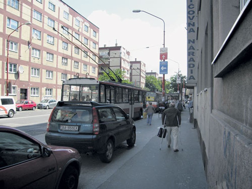 Zákon o pozemných komunikáciách je tu, žiaľ, situácia sa zlepšila len čiastočne. Uvediem pár príkladov. Autobusová stanica Mlynské nivy. Asfaltová plocha pred hlavným vchodom je predsa prístupová plocha pre tisíce cestujúcich, ktorí denne prichádzajú na túto stanicu.