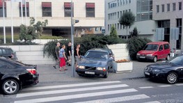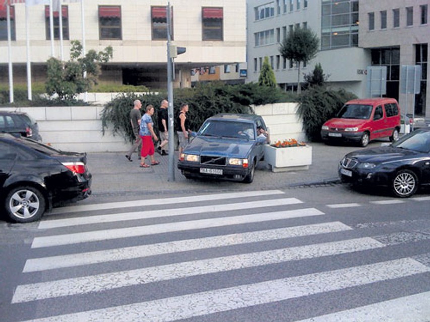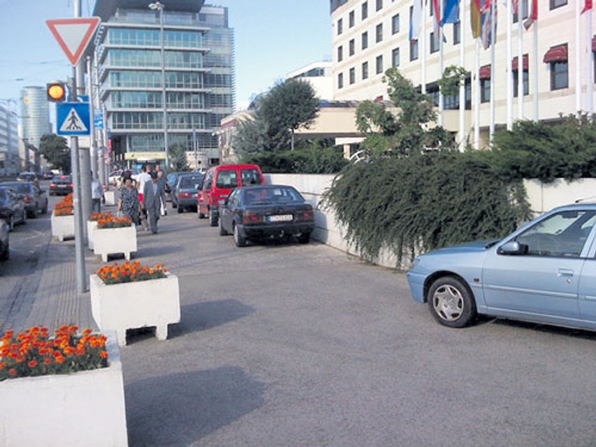Problémy však spôsobujú chodcom aj autá parkujúce na Hodžovom námestí pred hotelom Crown Plaza. Keďže niektoré autá tu parkujú denne, ide zrejme o zamestnancov hotela alebo okolitých prevádzok. Vjazdu na chodník im nebránia ani betónové kvetináče - stačilo ich posunúť o niekoľko centimetrov a na priechode pre chodcov (medzi semaforom a kvetináčom) majú vodiči týchto áut dosť priestoru na vjazd.