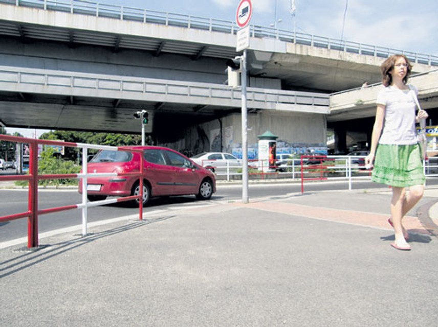 Zábradlie bráni chodcom pri prebiehaní, autá sa však pod Nový most aj tak dostanú.