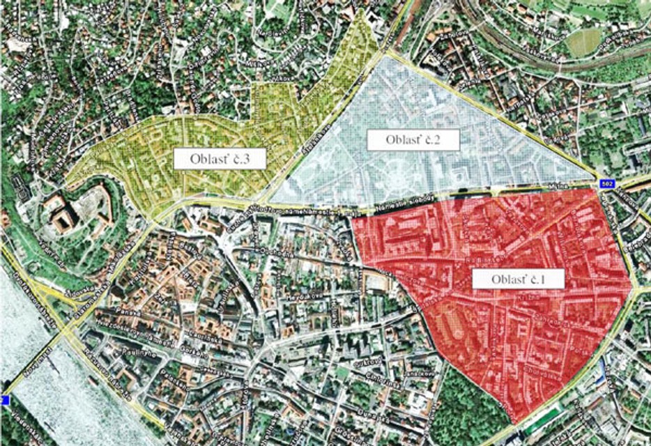 Hranice prvej novej oblasti parkovacej zóny sú navrhnuté do lokality ohraničenej: Námestie slobody - Kollárovo námestie - Mickiewiczova - Ulica 29. augusta - Poľná - Karadžičova a Legionárska ulica.