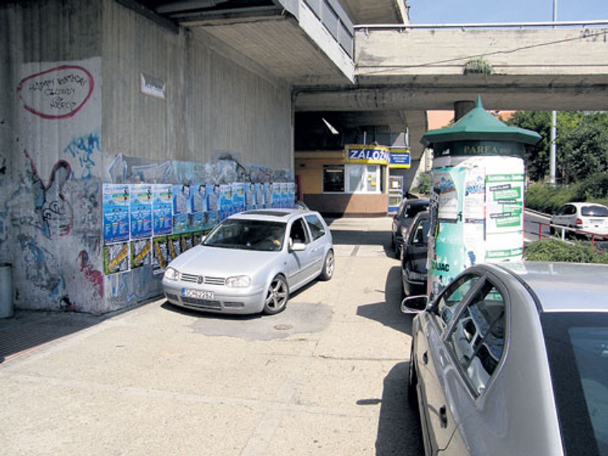 Pod Novým mostom počas našej prítomnosti (5. októbra 2009 predpoludním) stálo v zákaze vjazdu 15 vozidiel. Navyše niekoľko áut stálo aj na chodníku, kde majú stanovište taxíky a kde je zástavka MHD. Ani na jednom sme nezbadali tzv. papuču, teda blokovacie zariadenie, a to aj napriek tomu, že do tejto lokality zakazuje vjazd dopravná značka.