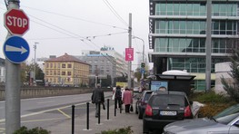 Mesto medzitým osadilo na chodník stĺpiky, no urobilo tak priamo do jeho stredu. Parkovanie priamo na zastávke MHD sa tým síce vylúčilo, ale chodci paradoxne vystupujú z trolejbusu priamo do ďalšej prekážky.