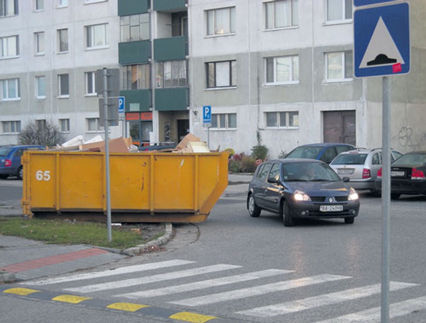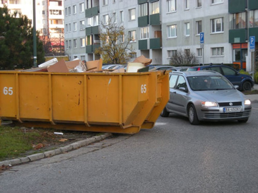 Na veľkokapacitný kontajner stojaci v ceste nás nedávno upozornil čitateľ. Kontajner bol zložený tak, že časťou zasahoval do komunikácie, čím komplikoval vodičom život na pomerne frekventovanej ulici.