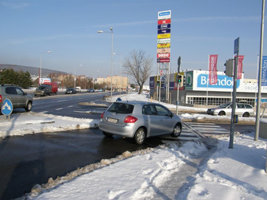 Zatiaľ čo radiace pruhy pred križovatkou sú z betónu kvôli dlhšej životnosti dopravne namáhaných úsekov, výjazdy z križovatky a priľahlý úsek ulice Pri vinohradoch majú nový asfaltový koberec. Betónový povrch majú aj dve autobusové zastávky MHD. Zastávky boli urobené mimo jazdných pruhov, v tzv. nikách.