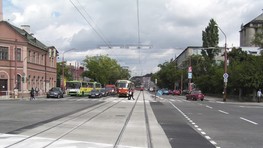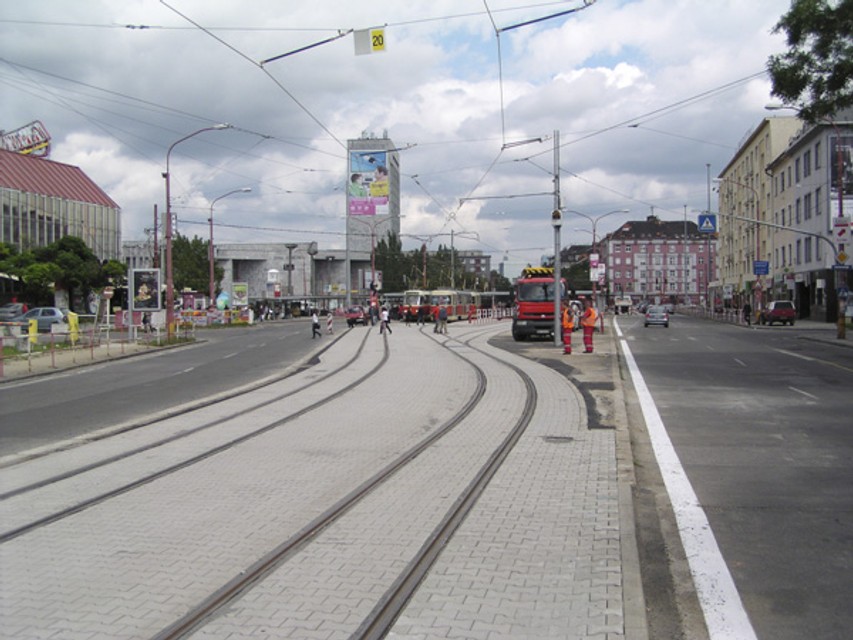 Električky už jazdili, ale na Trnavskom mýte sa ešte dokončievali rekonštrukčné práce.
