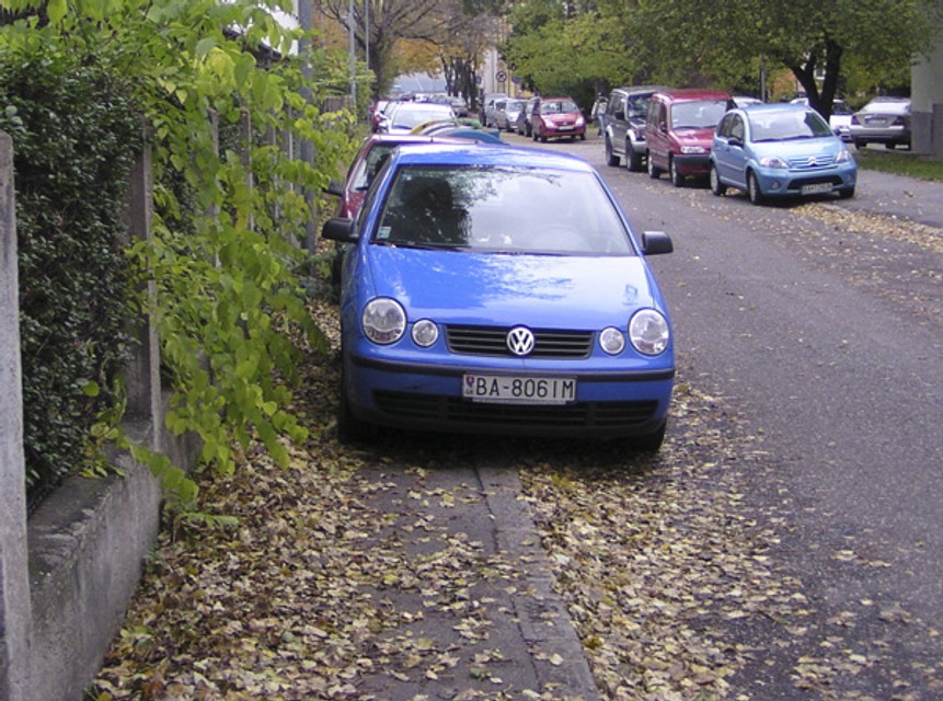 Ako napísal aj náš čitateľ Peter Bella, chodník tam má šírku asi 145 centimetrov a parkovať na ňom podľa zákona teda nie je ani možné, keďže vodič musí nechať 150 centimetrov na voľný pohyb chodcov. Napriek tomu tu však podľa Petra Bellu parkuje denne desať až pätnásť áut. Na chodníku potom zostáva medzi múrikom a autom zvyčajne iba 60- až 80-centimetrový priestor, ale často býva len 20-centimetrový.
