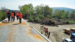Priebeh stavebných prác bol dnes osobne skontrolovať bratislavský župan Pavol Frešo. Most by mal byť prístupný cyklistom aj peším v lete.