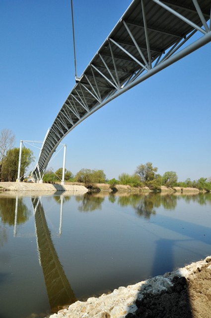 Práce na výstavbe cyklomosta medzi Devínskou Novou Vsou a obcou Schlosshof finalizujú. Oceľová konštrukcia už spája slovenskú a rakúsku stranu, v súčasnosti sa dokončuje zábradlie, robí sa finálny náter oceľovej konštrukcie ako aj príjazdová cesta na most.