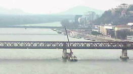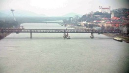 Všetky lode plávajú len cez jeden mostný otvor starého mosta - most_07022014_1