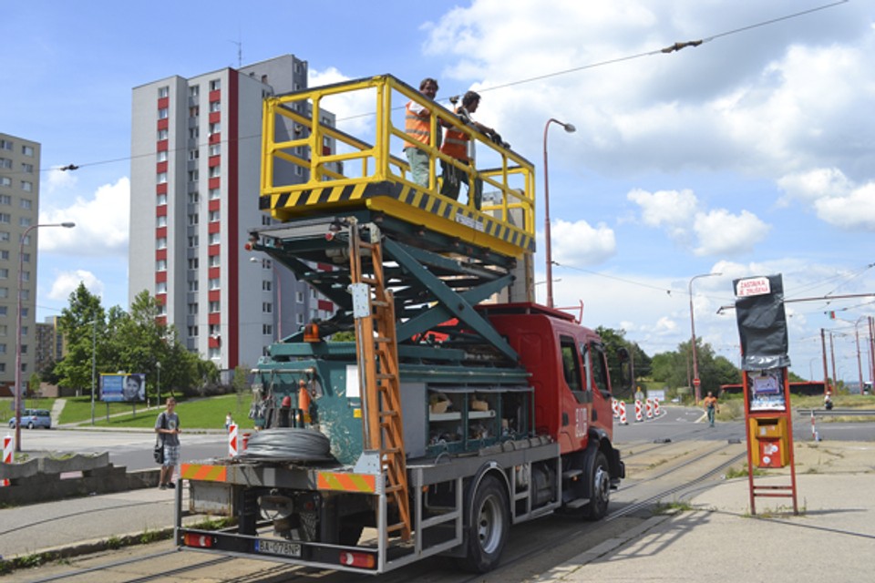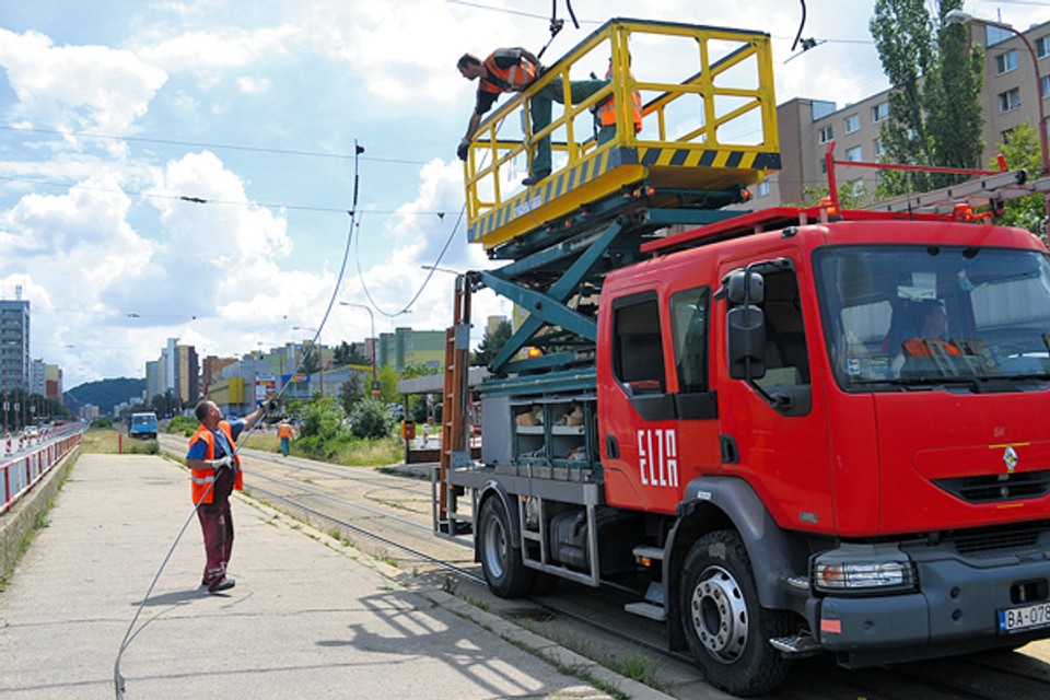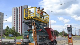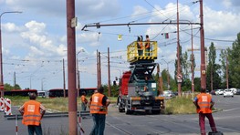Rekonštrukcia električkovej trate sa začala zvesením trolejového vedenia.