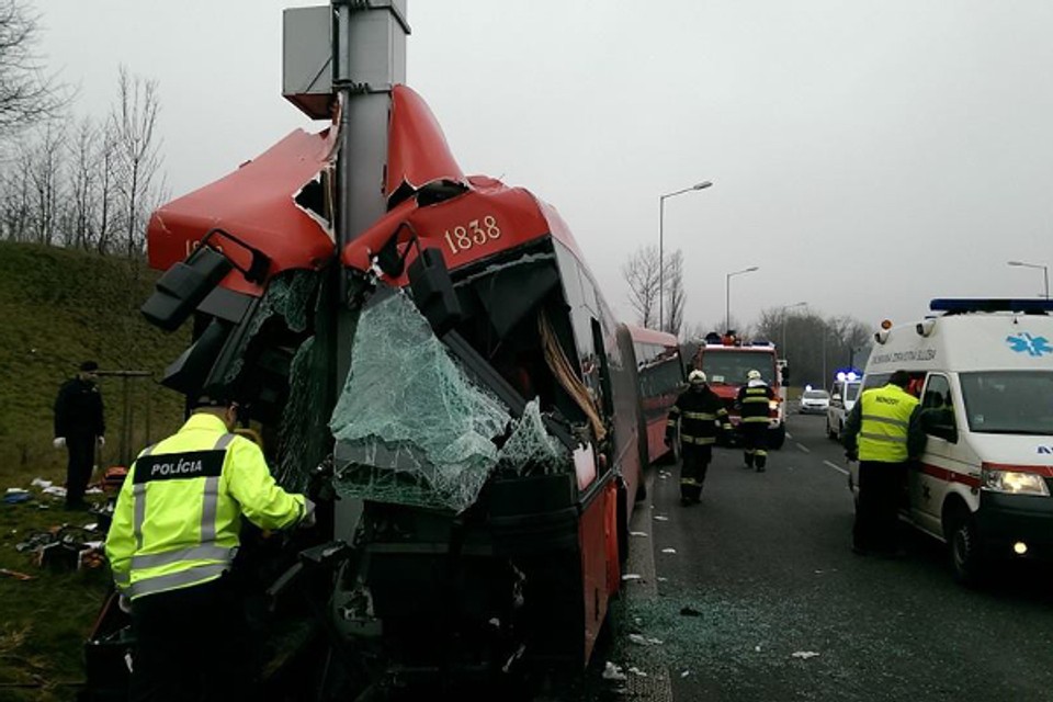 K nehode prišlo krátko pred 11.15 h. v blízkosti obchodného centra medzi mestskými časťami Lamač a Devínska Nová Ves. "Vodička autobusu za prvým kruhovým objazdom z diaľnice v smere z Devínskej Novej Vsi, na úrovni nákupného centra, z doposiaľ presne nezistených príčin narazila do stĺpu dopravného značenia," informovala bratislavská krajská policajná hovorkyňa Lucia Mihalíková. Ako dodala, presné príčiny, ako aj okolnosti tejto dopravnej nehody sú v súčasnosti predmetom prebiehajúceho vyšetrovania.