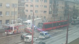 Dnes predpoludním došlo pri bratislavskom nákupnom cente Polus na Vajnorskej ulici k dopravnej nehode, pri ktorej električka č.4 smerom zo Zlatých Pieskov do mesta vrazila do červeného auta, ktoré odrazila a skončilo až na zastávke MHD. Vodiča museli z auta vyprostiť hasiči a bol prevezený do nemocnice...