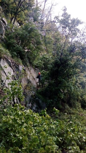 Zo skalného svahu nad devínskou cestou odstraňujú náletové dreviny - DSC_3193