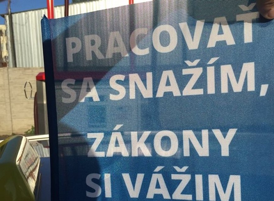 „Modrá vlajka je symbolom jednotného postoja nielen taxikárov, ale aj všetkých slušných podnikateľov voči nedodržiavaniu a ignorovaniu zákonov i aktuálnemu stavu na trhu,“ informovalo Občianske združenie (OZ) Koncesovaných taxikárov. „Pracovať sa snažím, zákony si vážim,“ píše sa na vlajočkách.