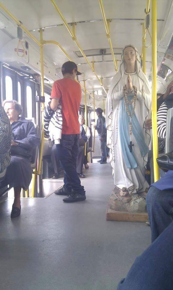 Ako sa dostala do vozidla MHD táto soška panenky Márie, to ani Pán Boh netuší!