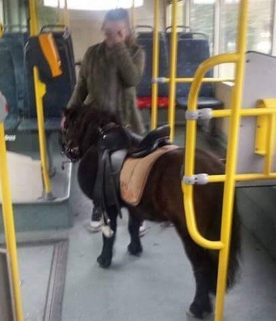 Aj poník sa niekedy chce alebo potrebuje odviezť v mestskej hromadnej doprave...