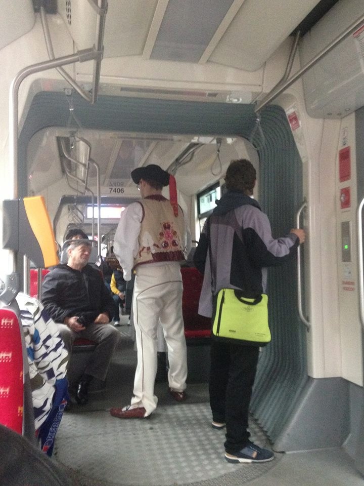 Muž v kroji v električke ponúkal cestujúcim občerstvenie. Bola to súčasť narodeninovej oslavy vodiča...