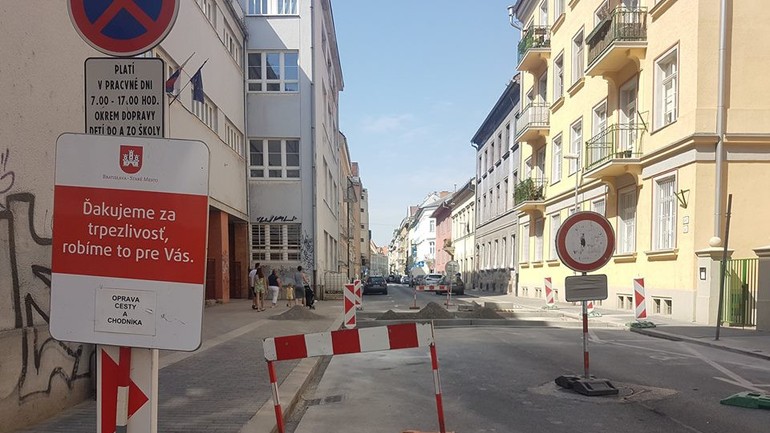 „Pred základnou školou na Grösslingovej ulici sa buduje nový spomaľovač a chodník. V tomto úseku bude dočasne obmedzené parkovanie. Práce by sa mali skončiť 15.augusta,” informovala dnes mestská časť Staré Mesto.