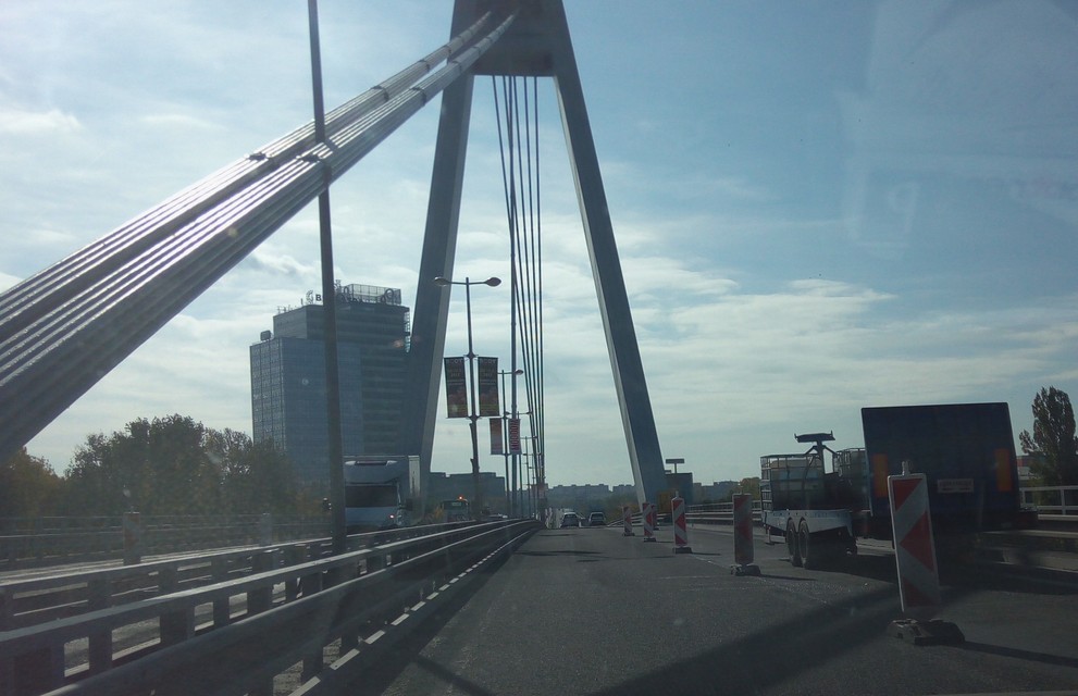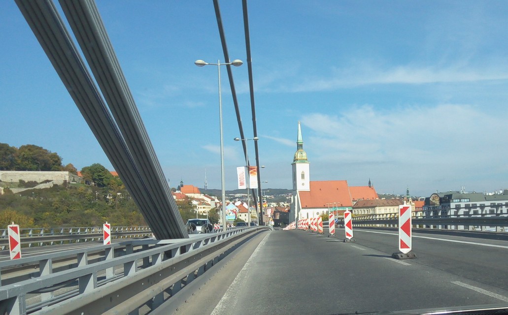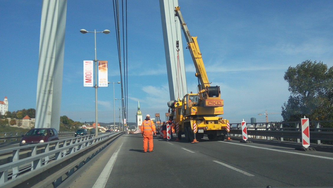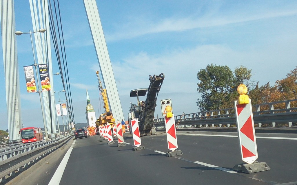 Bratislavčanov a najmä Petržalčanov zrejme dnes prekvapili cestári, ktorí opäť obsadili vozovku na Moste SNP. Uzavreté sú pravé pruhy v oboch smeroch, na mieste sme sa boli pozrieť. V smere z Petržalky autá museli dokonca niekedy stáť. Bolo to však spôsobené hlavne tým, že robotníci vykladali na vozovku svoje privezené stroje a vtedy zastavili premávku v oboch pruhoch v smere do centra.