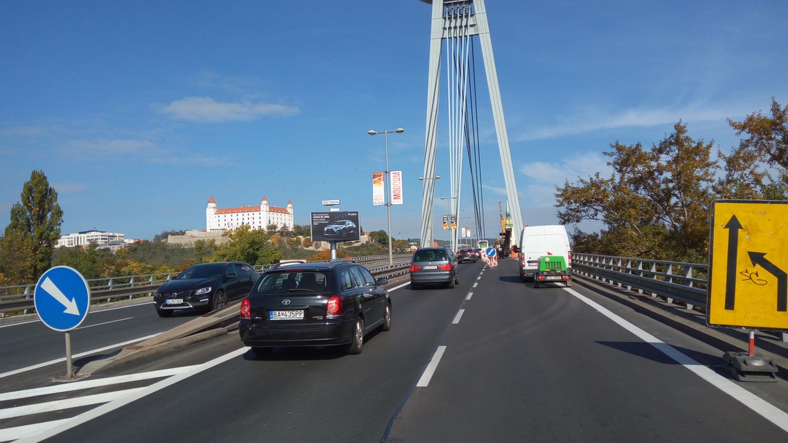FOTO: Cestári sa vrátili na Most SNP, pravé pruhy v oboch smeroch sú uzavreté