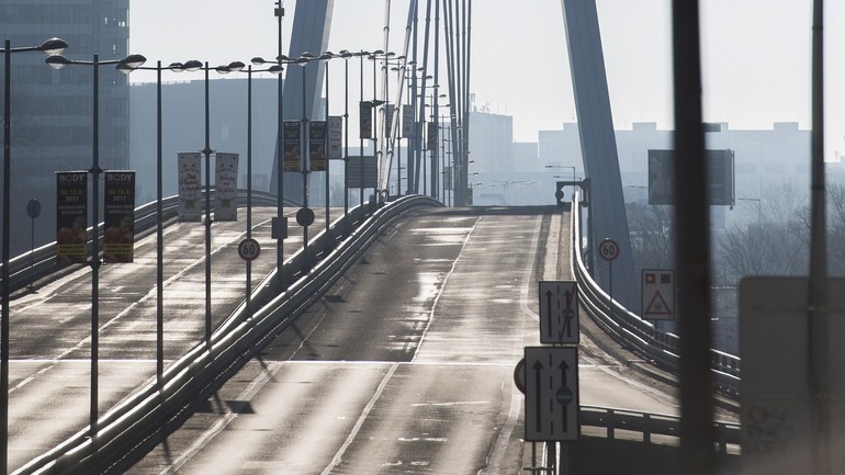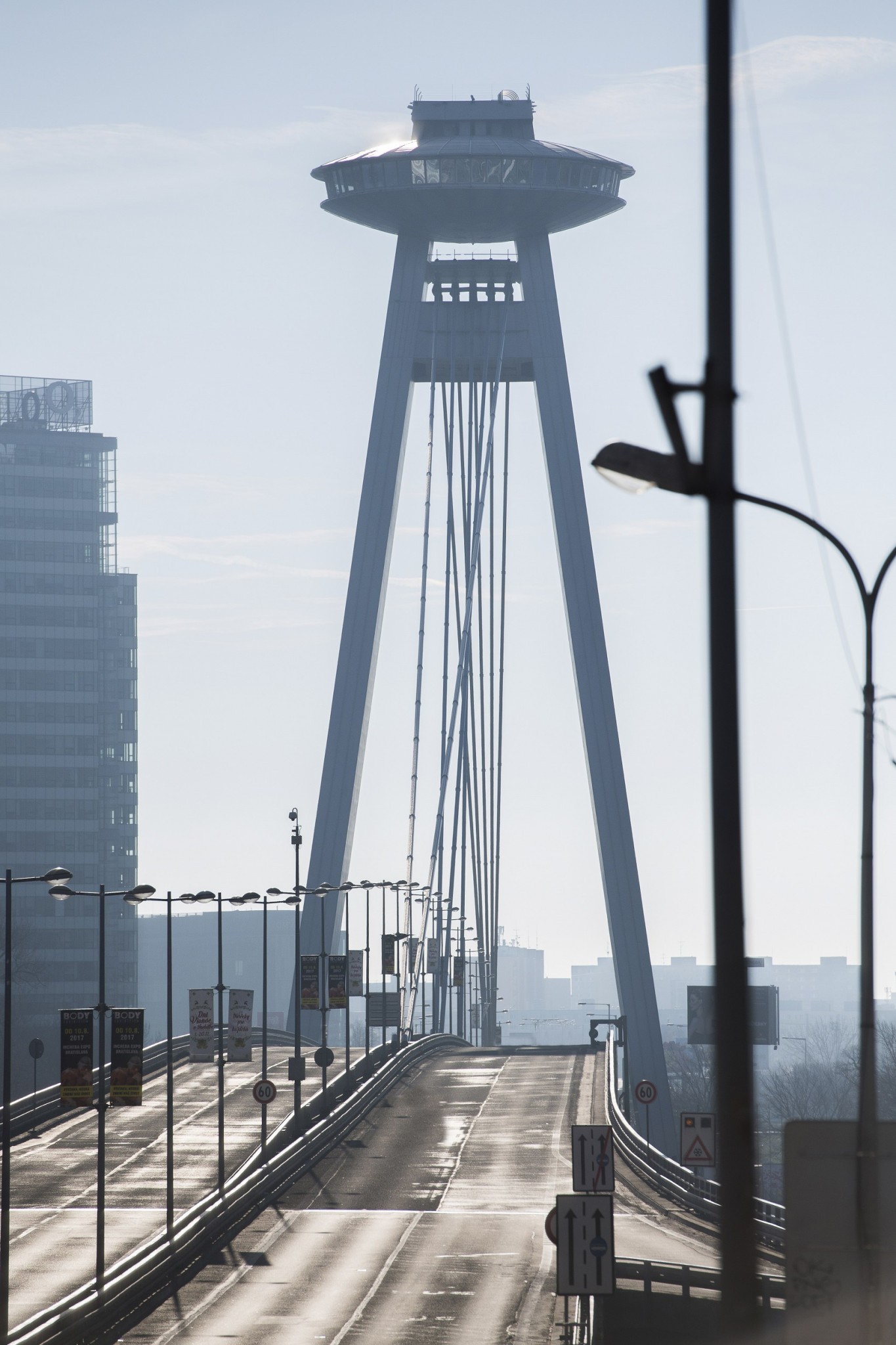 Bratislavský Most SNP krátko po jedenástej uzavreli. Dôvodom je nahromadený ľad a sneh, ktorý odstraňujú zo strechy reštaurácie UFO.