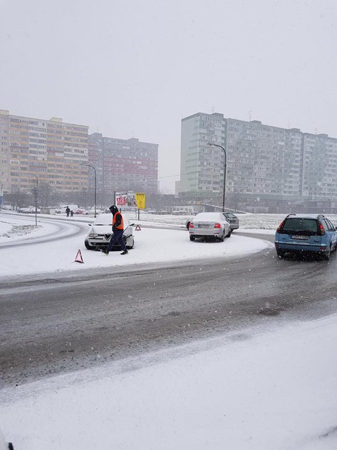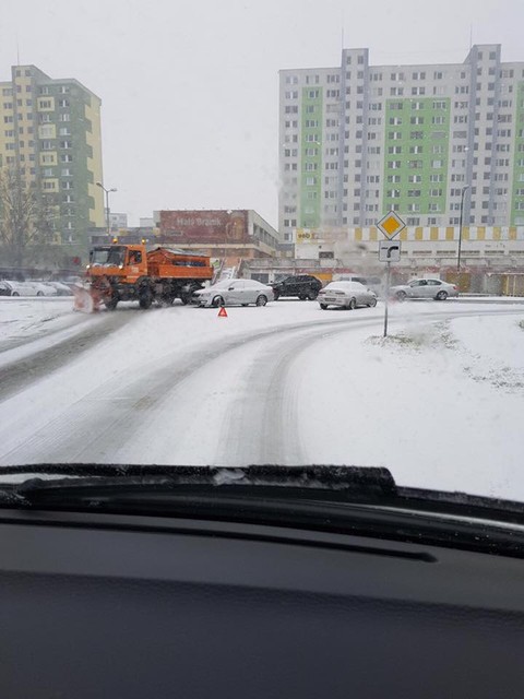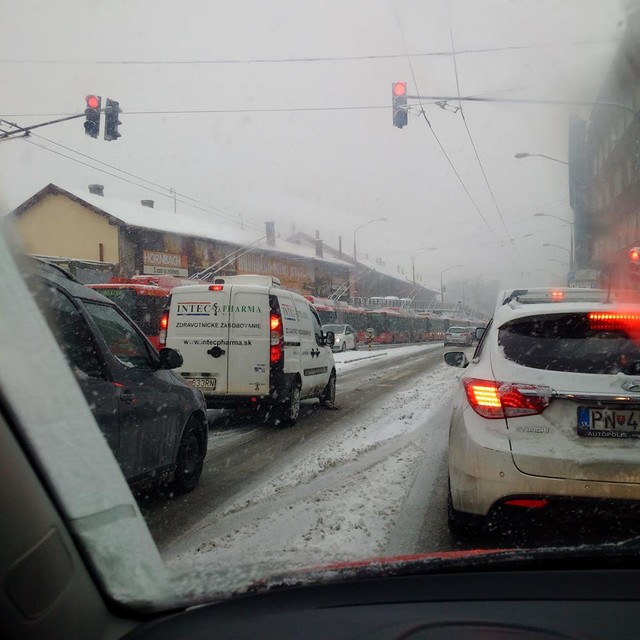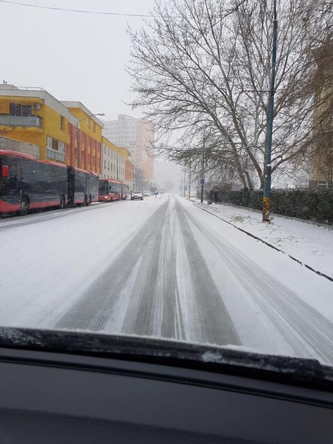 Dopravu komplikuje aj niekoľko nehôd. Jeden z vodičov nezvládol zákrutu na šmykľavej ceste na Botanickej pred Mostom Lafranconi v smere do centra, ďalšia nehoda sa stala o kúsok ďalej pri PKO. Nehody hlásili aj na Trnavskej, Bajkalskej či Ivanskej ceste. Ďalšia nehoda sa stala na ceste z Koliby, keď vodič nezvládol zákrutu a vyletel do múru.