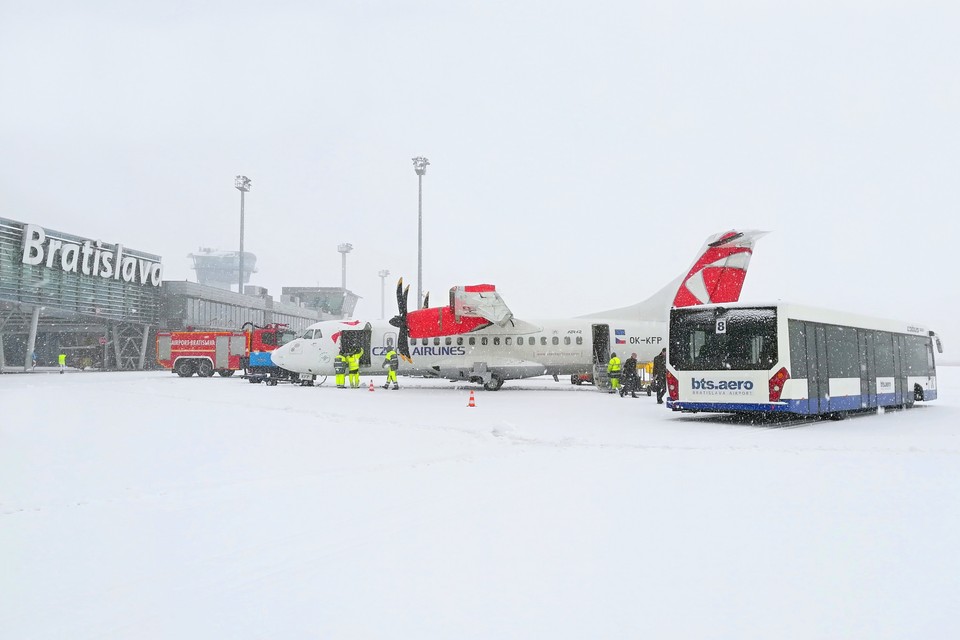 Letecké spoločnosti na bratislavskom letisku využívajú v týchto dňoch služby odnámrazovania lietadiel. O čistenie vzletovo-pristávacích dráh sa starajú technici zimnej údržby.